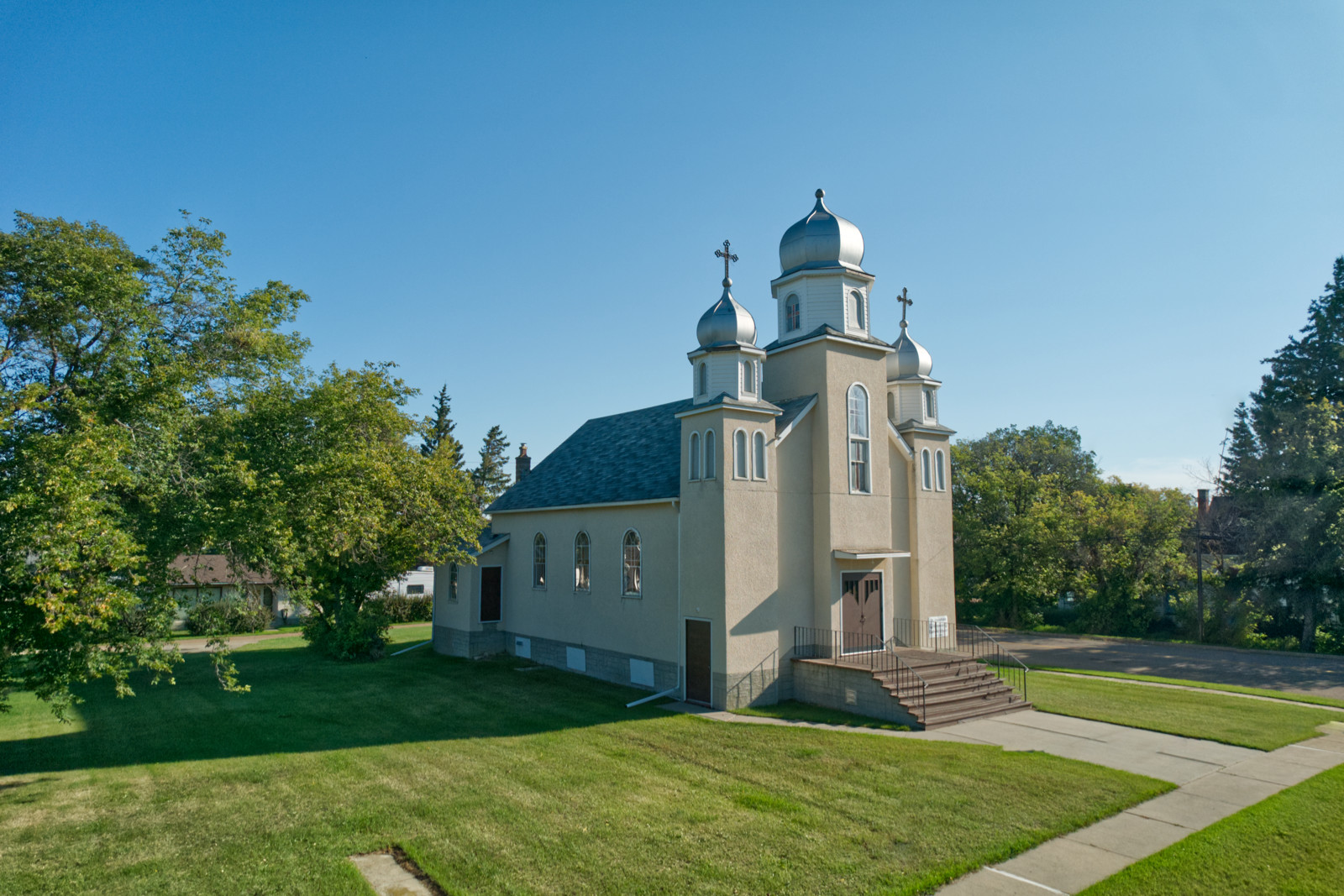 The church is located in Innisfree, a town some 160 km. east of Edmonton. The property was purchased from the Roman Catholics on April 12, 1951. The first services were held in private homes. Finally in 1954 the community started to build a new church. The church structure (48’ x 28’ x 10’) was designed by Micholas Fliak of Edmonton. Volodymyr Stoyko of Fidelity was the contractor. By the end of 1972, the construction costs of the last enlargement of the church were estimated at $20,000.00. The biggest donations came from Paranka Sadova and Fred Pshyk, however, every member was committed to donate at least $50.00.